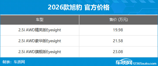 动力部分,新车全系搭载2.5升水平对置自然吸气发动机,最大功率为124千瓦,峰值扭矩为252牛·米,传动系统匹配CVT无级变速箱,并配备全时四驱系统。