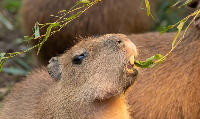 水豚这边也不是真的像外表一样呆瓜,它们是群居动物,通常组成10只以上的种群,一旦察觉威胁,整个群体都会警惕起来,然后迅速逃生。而且水豚有着粗厚的皮肤,锋利的门齿咬合力惊人,能从坚硬的草茎上撕下食物。面对威胁时,它的反击也可能给鳄鱼造成严重伤害。