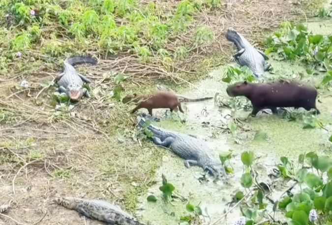 南美洲的湿地正面临着水量减少、农田扩张和干旱加剧的困境。当鱼类数量减少后,无论凯门鳄多么不愿意,为了饱腹,它们就得把水豚当成主要猎物。